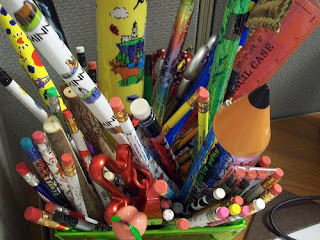 I have a nice collection of pencils that started as a joke when co-workers would go on business trips or trips in general to other states. They would bring me back a pencil (I used pencils in my previous job quite a bit). Now it is kind of my thing to collect them. This is my collection of pencils I don't use.